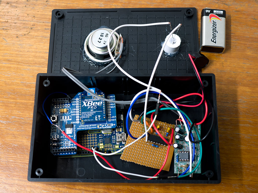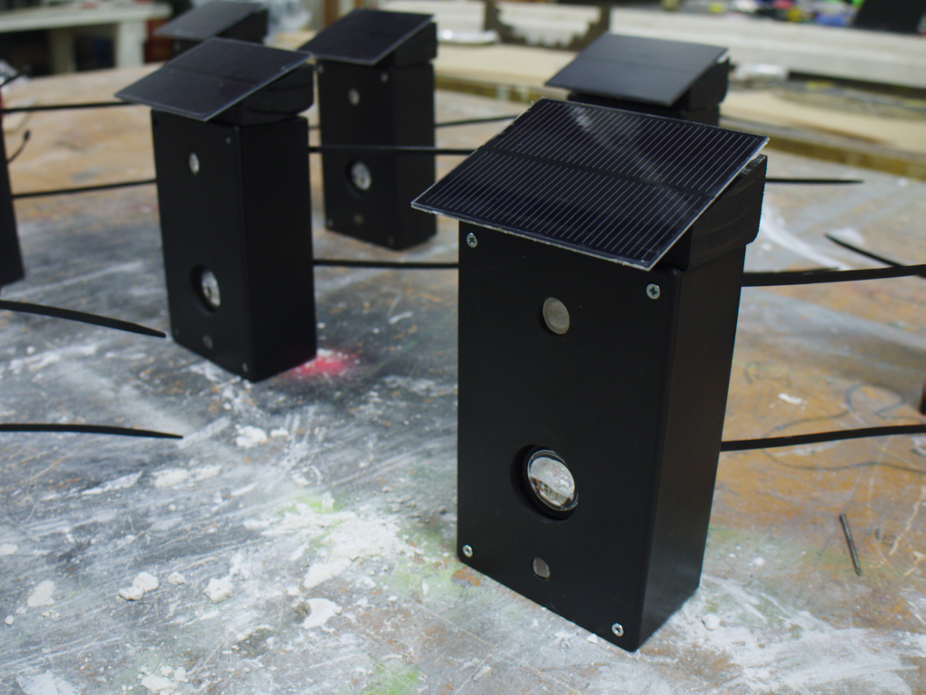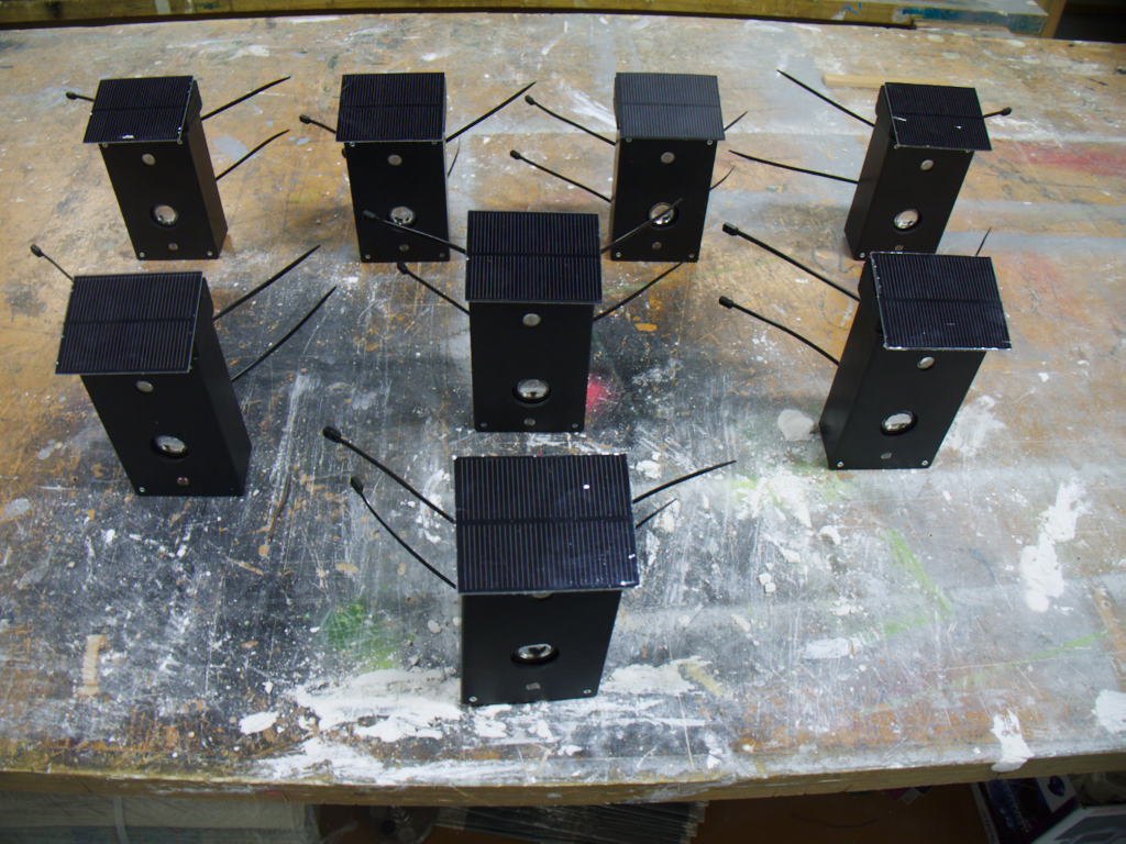 These small solar powered audio-visual devices are roughly the shape and size of a brick, hence their name – Brickets. The devices collectively create an ecology of chirping sounds in a public, urban setting. Each Bricket contains an electronic circuit that produces digitally generated chirps and also contains a bright LED light that glows every time the device produces a chirp.