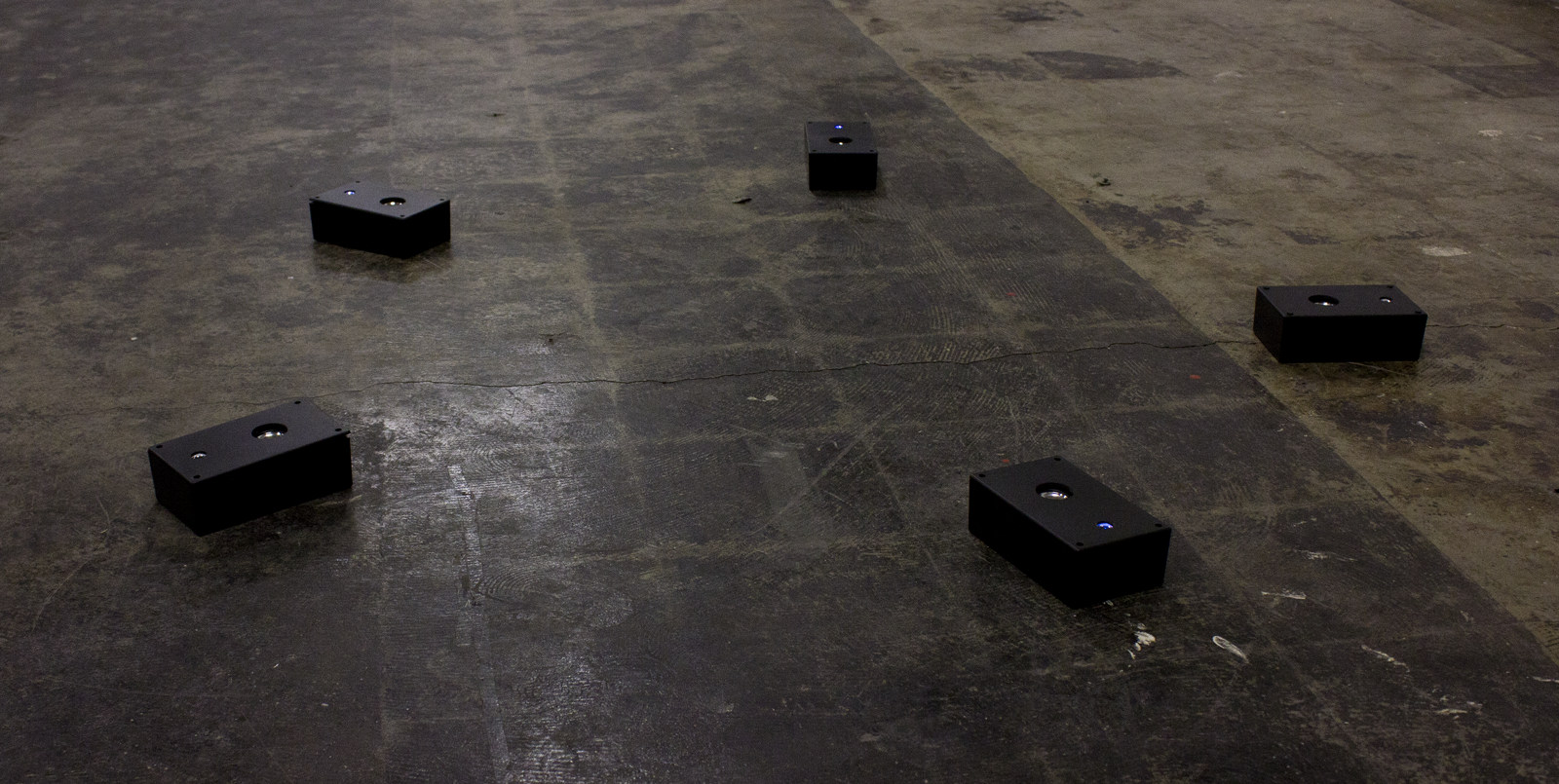 In addition to monitoring environmental data, this piece investigates the audio-visual qualities of coupled-oscillator synchronisation, the latter being a technical term for the types of synchronisation found in nature, such as flashing fire-flies, synchronised frog calls, synchronisation of pace-maker cells in the heart, circadian rhythms and so on.